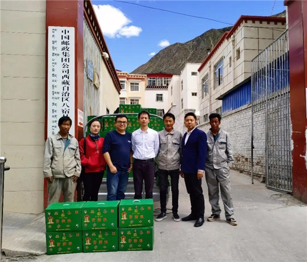 閩九援八宿工作組隊員在郵政部門交接發往福州的農特產品。圖片來源:福建第九批援藏隊
