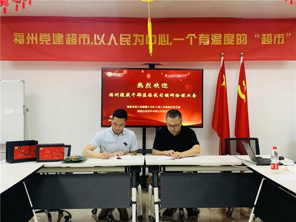 閩九援八宿工作組領隊林謀東與福州黨建超市平臺簽約。圖片來源:福建第九批援藏隊
