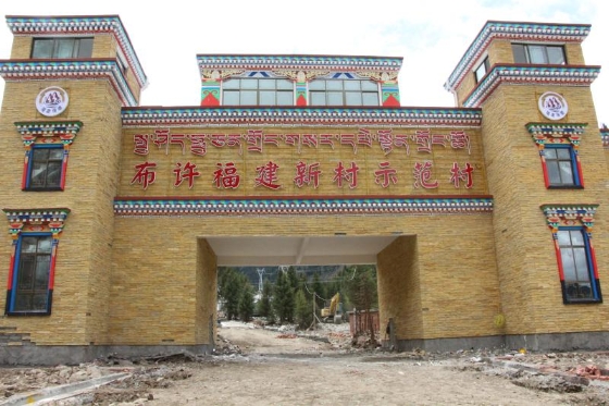 福建援建的洛隆縣馬利鎮布許村易地扶貧搬遷項目(布許福建新村),藏式門樓美觀大氣(東南網記者 盧金福 攝)