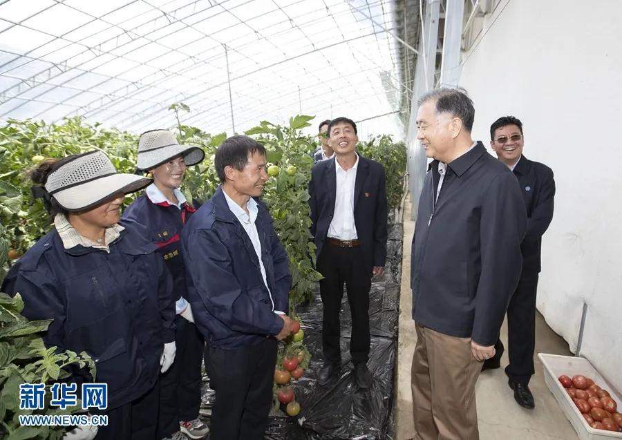 ▲7月6日至8日,中共中央政治局常委、全國政協主席汪洋在西藏調研。這是7月7日,汪洋在日喀則白朗縣察看果蔬種植,與務工群眾交流。新華社記者 黃敬文 攝