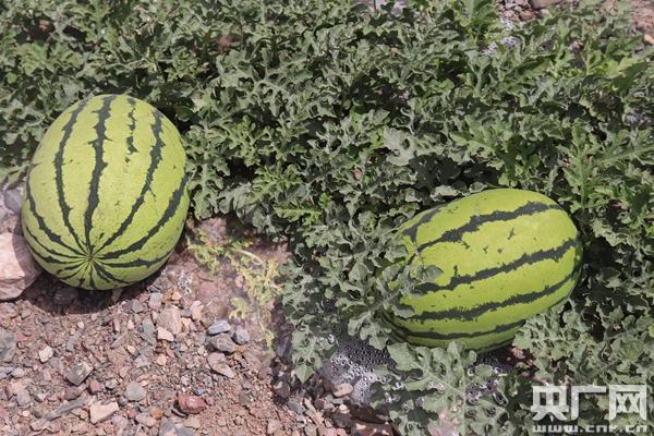 中衛市中寧縣喊叫水村硒砂瓜田(央廣網記者 母晨靜 攝) 隨后,記者又來到中衛市中寧縣喊叫水村硒砂瓜田。中衛位于寧夏中西部,黃河前套之首,水土光熱等農業資源稟賦獨特。硒砂瓜又被稱為“石頭縫里長出的西瓜”,主要集中在中部干旱帶環香山地區。