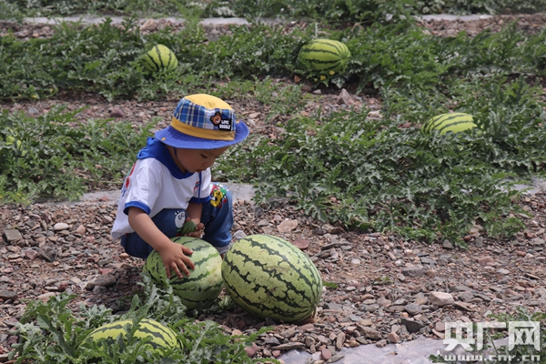 一個小朋友在瓜田里玩耍(央廣網記者 母晨靜 攝) 2018年,中衛市種植硒砂瓜90萬畝,總產量達136萬噸,實現銷售收入18億元,產業總產值超過25億元。2019年,全市種植硒砂瓜達90.08萬畝,其中3126戶建檔立卡戶種植11.7萬畝。蓬勃發展的硒砂瓜產業還帶動了當地餐飲、住宿、物流等行業的快速發展。 密麻麻的葡萄帶來致富新希望