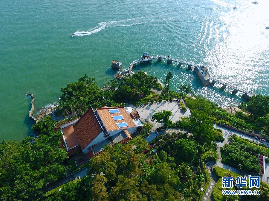 空中俯瞰,鼓浪嶼菽莊花園一隅的鼓浪嶼鋼琴博物館及濱海風光。新華社記者姜克紅攝