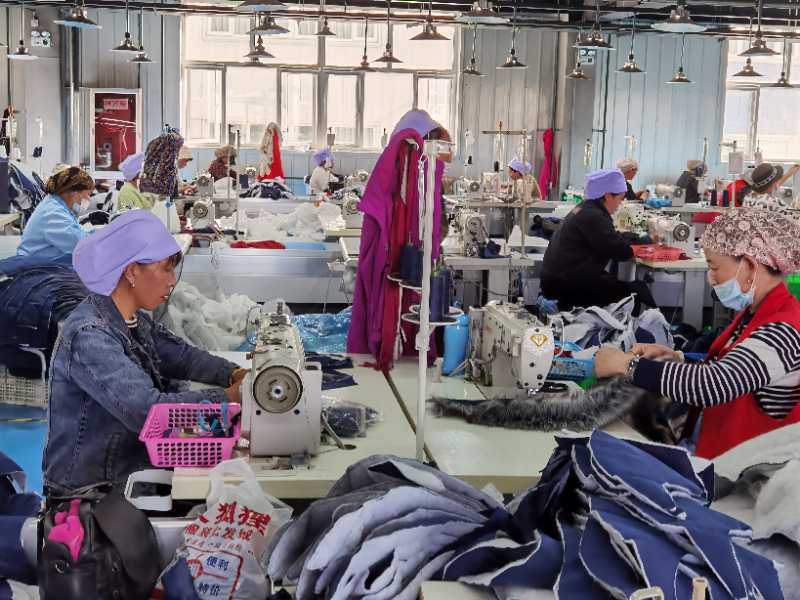 位于海原縣閩寧紡織制品車間內,工人正在緊張的忙碌中。(海原縣援寧工作組 供圖)