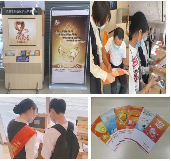 (2)以廳堂為陣營宣傳:在每家支行均設置獨立的宣傳專區。電子顯示屏上播放本月海報,分行消保中心8月往46家支行和社區支行配送展架46份,向進店客戶積極展示。同時分行已在宣傳專區布置關于以個人信息保護、防范網絡詐騙、識別非法網貸款、理財知識、防賭反賭、征信等6款消保知識折頁28200多份。
