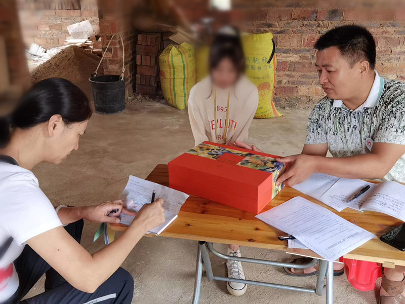 工作人員向貧困兒童贈送月餅 企業供圖