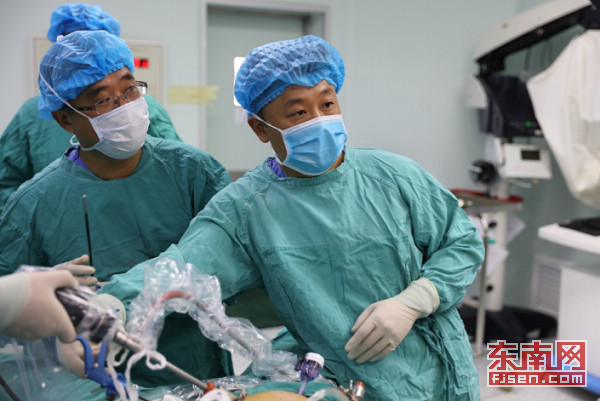 伍先生體檢發現直腸有點問題,不排除局部有癌變,2015年11月9日,伍先生入住昌吉州人民醫院腫瘤科,盧醫生和腫瘤科劉恒山、李赟兩位醫生一道,組織消化內科、普外科、病理科、放療科等10余個相關科室主任及專家進行多學科討論,制定了詳細的手術方案。11月13日上午,盧星榕與腫瘤科醫師密切配合,在纖維結腸鏡定位下,為伍先生實施了腹腔鏡輔助低位直腸前切除術,因患者體重近90Kg,重度肥胖,靠著頑強的毅力,手術歷時6個多小時后順利完成。腹部只有一長約5cm的小切口,而傳統開腹切口需長達20-25cm。盧醫生此時才感到饑腸轆轆、眼疼腿酸。伍先生當天就已飲水,術后3天便恢復了正常飲食。