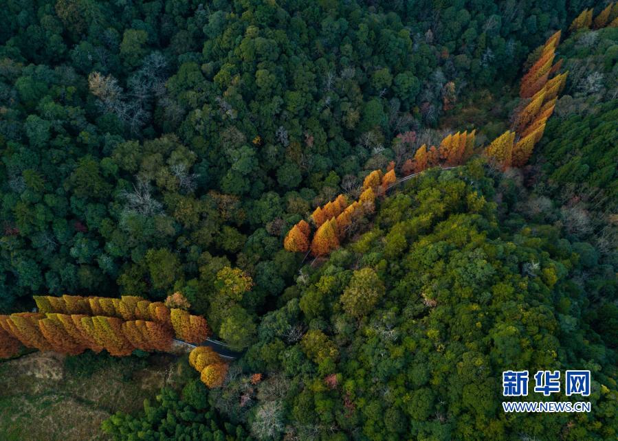 這是11月19日拍攝的福建省三明市將樂縣國家級自然保護區水杉大道(無人機照片)。