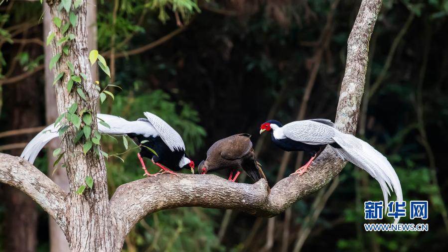 在永安市青水畬族鄉豐田村,幾只白鷴在林間的樹枝上嬉戲(11月20日攝)。新華社記者 彭張青 攝