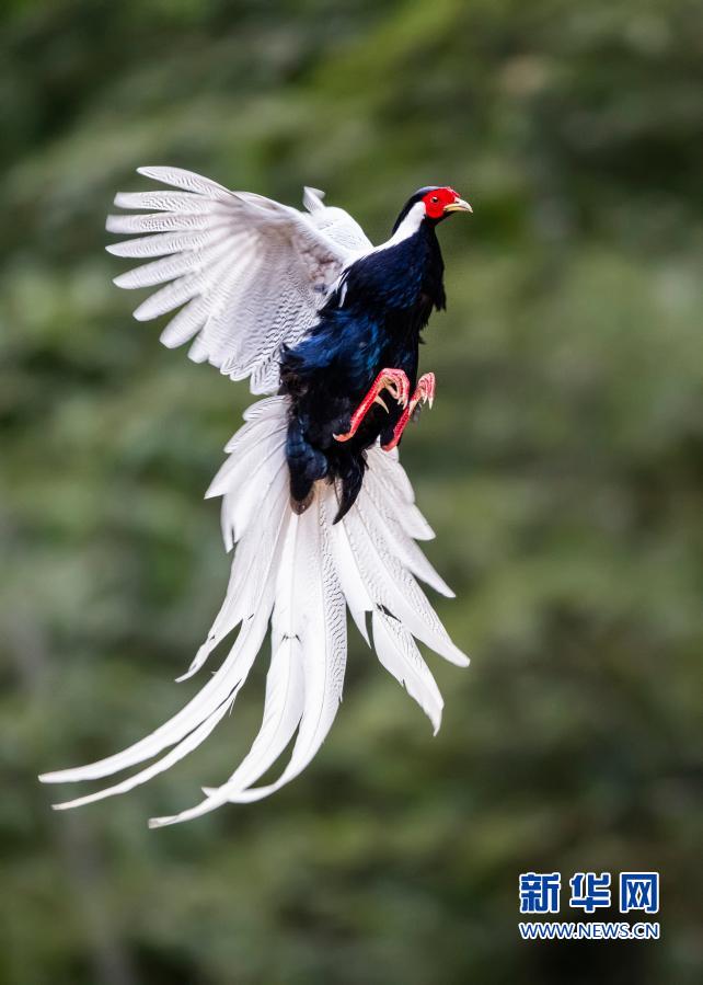 在永安市青水畬族鄉豐田村,一只白鷴在林間飛翔(11月19日攝)。新華社記者 梅永存 攝