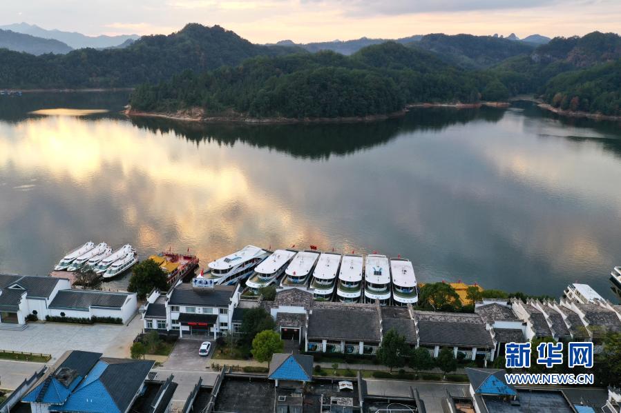 福建省泰寧縣大金湖畔的梅口鄉水際村及游客碼頭(11月19日攝,無人機照片)。新華社記者 姜克紅 攝
