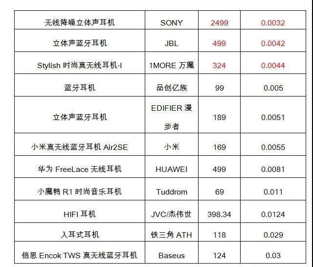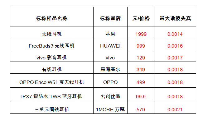 1、聽音檢驗 耳機聽音檢驗主要是測試耳機在正常使用情況下,是否存在影響正常聽音的異常聲。其試驗方法及判定標準為:在額定頻率范圍內,饋給耳機正弦信號,耳機不應出現影響正常使用效果的垃圾聲、碰圈聲和異常聲。 本次試驗中為20款耳機播放從20Hz-20000Hz標準正弦掃頻信號,采用主觀監聽的方法進行判定,均未出現影響耳機正常使用的垃圾聲、碰圈聲和異常聲。 2、最大聲壓級和模擬節目信號特性電壓 耳機的聽力安全問題已經成為消費者們關注的熱點問題。本次我們選取了歐盟最新版本的聽力安全標準BSEN 50332-1:2013、BSEN 50332-2:2013、IEC 62368 ed3進行試驗,針對藍牙耳機適用的項目為最大聲壓級,針對模擬耳機適用的項目為模擬節目信號特性電壓,兩個指標均是為了保證耳機聲壓不能過大。 試驗結果顯示:12副耳機進行了最大聲壓級測試(藍牙模式),8副耳機進行了模擬節目信號特性電壓項目測試,全部滿足標準CLASS 2類限值要求。 3、諧波失真試驗 諧波失真是衡量耳機性能的重要指標。很多耳機產品聽感不佳,就是由于諧波失真造成的。諧波失真如果比較嚴重會聽到很多刺耳聲、高頻聲,聲音比起正常聽音要混雜很多,嚴重影響消費者聽覺體驗。 下表對本次耳機樣品的售賣價格和諧波失真數據進行了比對: 表三:最大諧波失真 (點擊圖片放大查看)