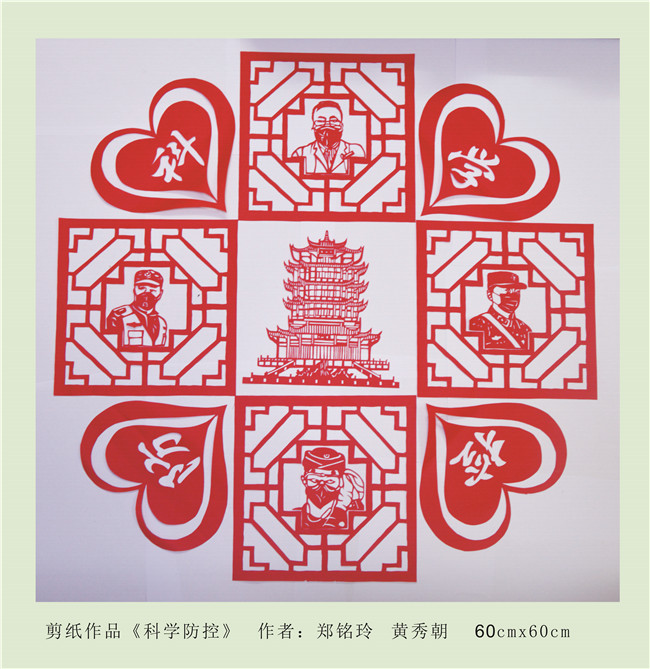 剪紙作品《科學防控》,作者:鄭銘玲、黃秀朝