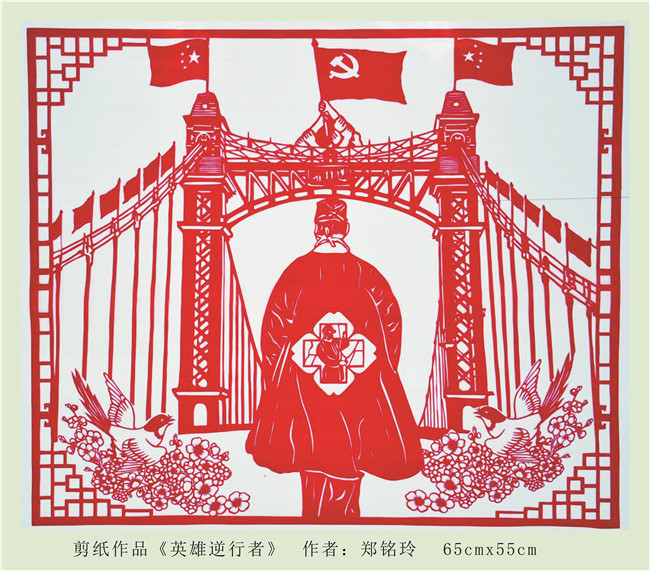 剪紙作品《英雄逆行者》,作者:鄭銘玲