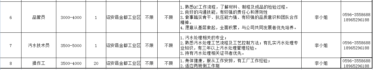 漳州市重點企業招聘信息匯總