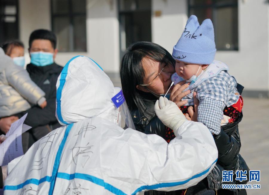 1月18日,檢測人員在河北省隆堯縣隆堯鎮東河村為村民進行核酸檢測。