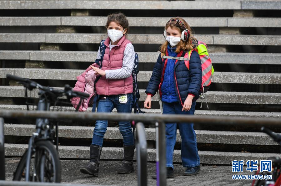 2月22日,在德國法蘭克福,兩名小學生上完課后離開學校。自當日起,隨著新冠防疫措施的逐步寬松,德國部分聯邦州的學校和日托中心復課。新華社記者 逯陽 攝