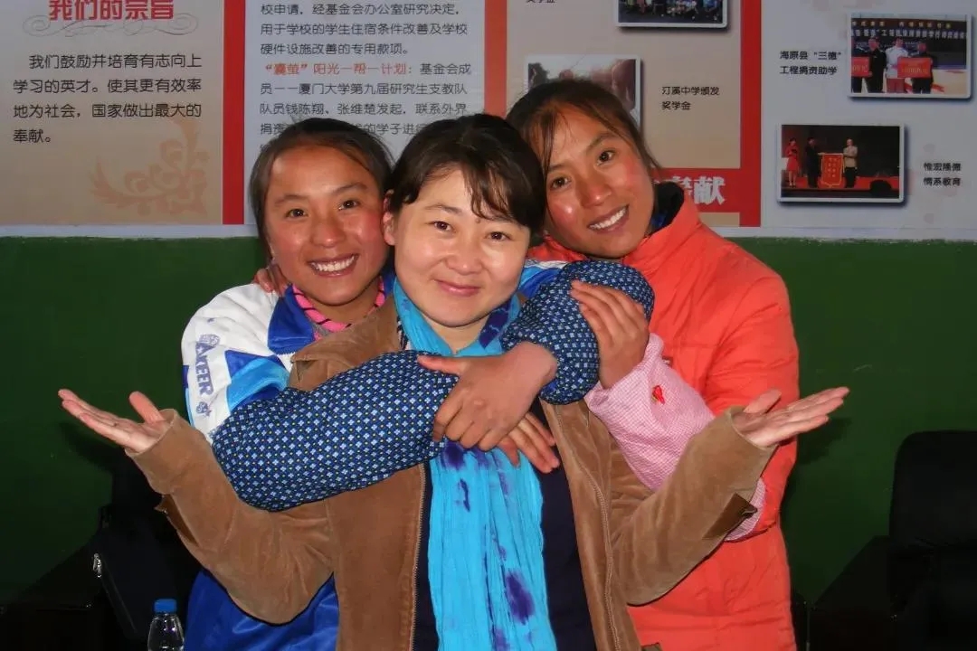 首屆研支團成員張秀麗再次回到海原縣時與當年受助學生合影