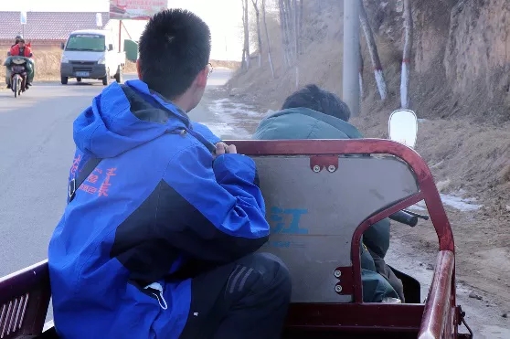 第二十二屆研支團成員在村口乘三輪車去學生家中家訪