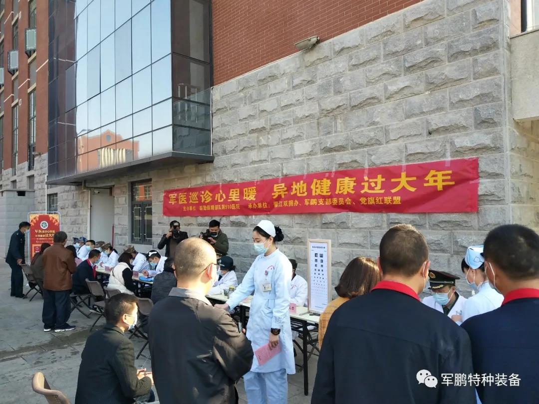 2月1日,泉州晉江雙擁辦、聯勤保障部隊第910醫院、軍鵬特種裝備股份公司黨支部等單位共同舉辦的“軍醫巡診心里暖?異地健康過大年 ”義診活動,走進晉江經濟開發區。