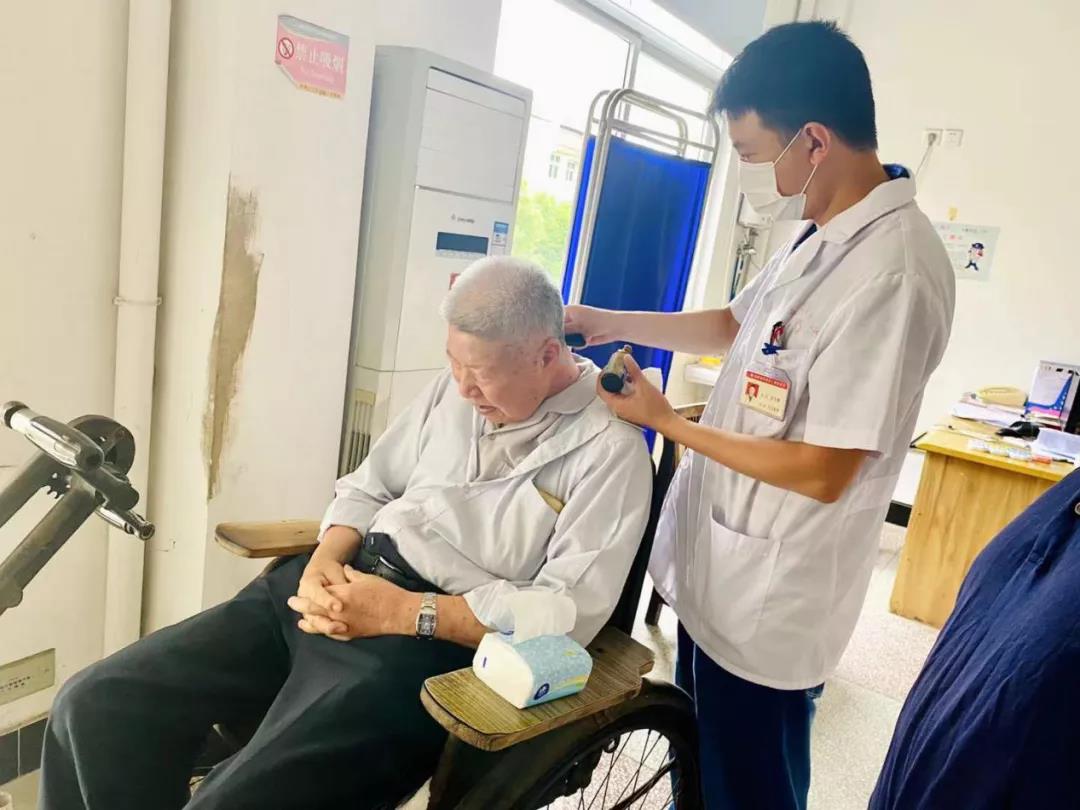 在這里生活久了,劉伙官也成了榮軍醫院的好幫手。有一天,院里來了一位姓孫的傷殘軍人,由于受傷嚴重,不僅身體殘疾無法行走,智力、語言、咀嚼等方面也都受到了影響,特別是情緒很不穩定。雖然醫護人員細心地幫他導尿、翻身、換藥、洗澡等,但由于接受不了殘疾的現實,加上腦部受傷,他經常不配合治療,甚至打罵護士。劉伙官看到這種情況,就跟著醫護人員一起開導他,每天都去找他談心聊天,和他講自己在戰斗中受傷的故事、黨的政府的關心以及醫護人員的暖心關愛,并鼓勵他聽從醫囑、安心休養、爭取更好地康復。最終,這位傷殘軍人走出了陰影。幾十年來,不少榮譽軍人休養員在他影響下,身殘志堅、自強不息,成為教育影響下一代的好榜樣。