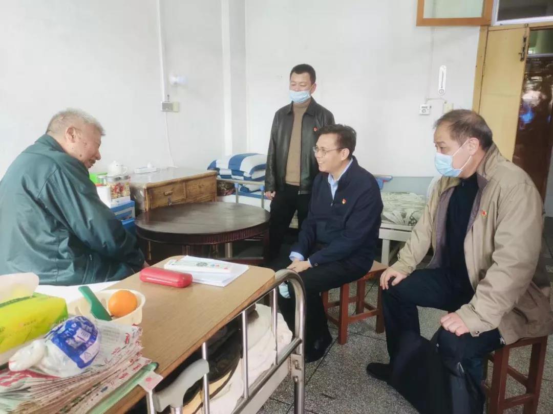 省退役軍人廳黨組書記、廳長伍斌(右二)到榮軍醫院看望慰問劉伙官(左一)