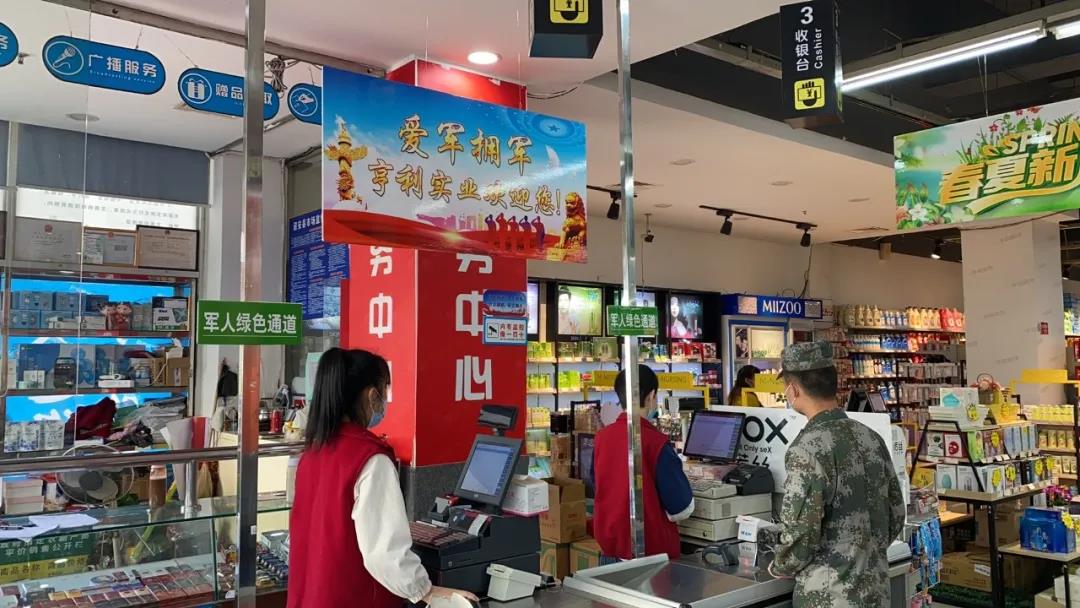 超市設置“軍人綠色通道” 在詔安縣退役軍人局和公交公司的緊密配合下,4月11日,“擁軍公交專線”開始正式運行,由詔安縣公交公司提供兩輛22座位公交車輛,在車上設置“擁軍公交專線”標識,每周日全天候免費為部隊提供接送服務,并在部隊駐訓地附近設置擁軍公交??空?,在超市顯要位置設置“軍人綠色通道”,方便部隊官兵休假出行、采購物資等。 |