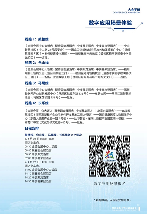 08 在數字應用場景體驗的部分 詳盡介紹了 鼓樓線、倉山線、馬尾線、長樂線 四條體驗路線的基本信息 心動不如行動 速速掃碼報名吧!