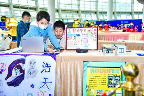 人工智能機器人比賽 以《智能家庭小助手》為主題的創意編程搭建比賽共有20支隊伍進入決賽,參賽戰隊將投稿的創意作品進行現場展示。選手們發揮自身的創造力和想象力搭建作品,并通過周邊物料對自己的作品展區進行布置,利用不同的裝飾風格來展示自己的戰隊文化?,F場展現了AI讀書數娃、智能搭配衣柜、家庭智能控制中心、分體式樓梯清洗系統等各種創意作品。