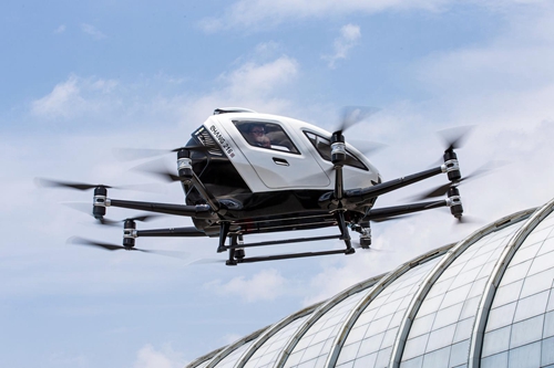 25日,億航載人級自動駕駛飛行器在福建首次進行載人飛行。林熙 攝