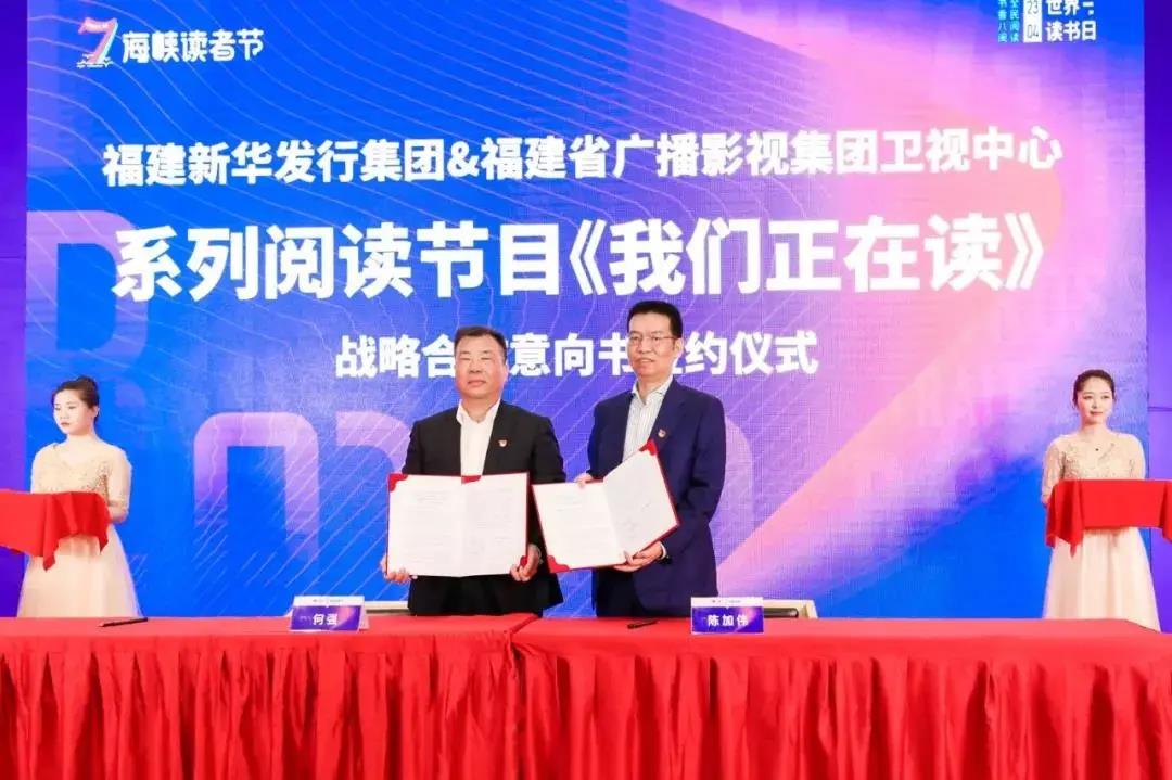 4月22日上午,海峽出版發行集團所屬的福建新華發行集團還和福建省廣播影視集團衛視中心簽訂了系列閱讀節目《我們正在讀》戰略合作意向書。省廣播影視集團黨組副書記、總經理莊志松,福建教育學院黨委委員、副院長張志剛,海峽出版發行集團黨委副書記嚴桂忠出席簽約儀式。海峽出版發行集團黨委委員、副總經理何強,省廣播影視集團黨組成員、副董事長陳加偉上臺簽約。