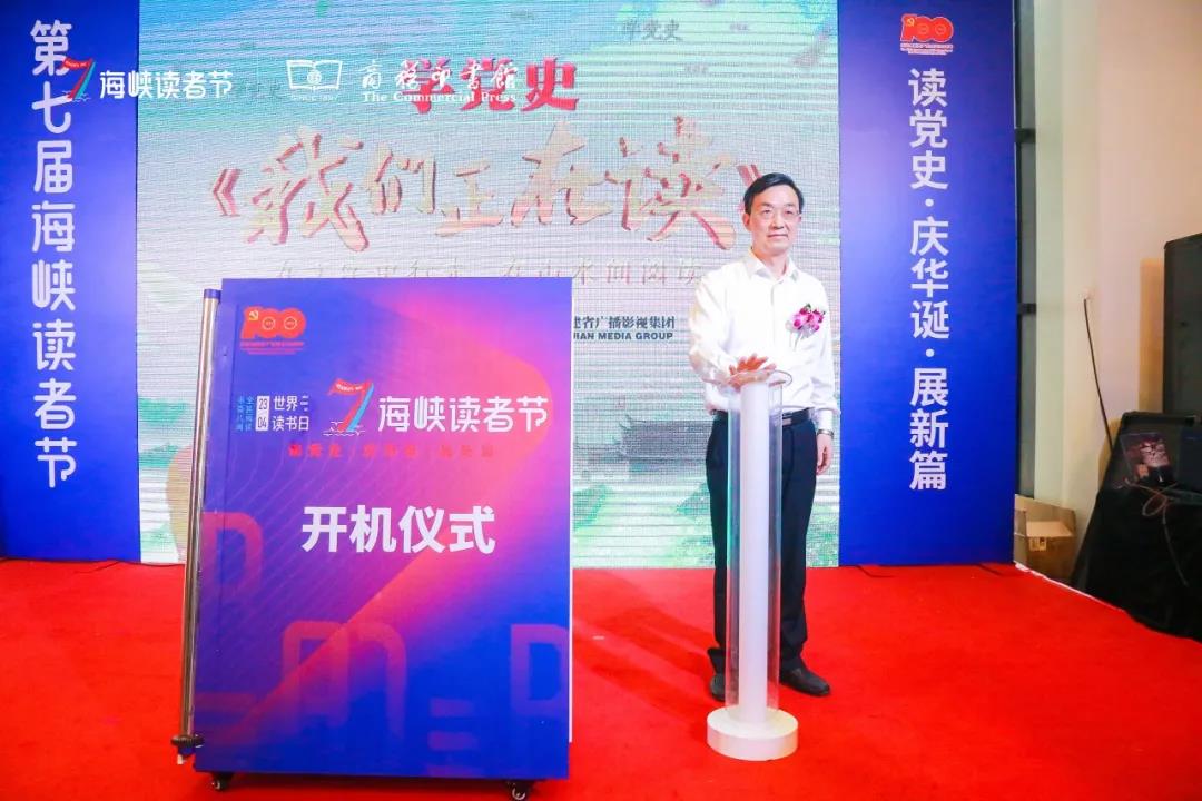 4月23日,在第七屆海峽讀者節開幕式上,大型沉浸式閱讀分享類節目《我們正在讀》開機啟動。福建省人大常委會副主任嚴可仕,福建省政協副主席劉獻祥,中共福建省委組織部副部長、老干局局長兼省政協文化文史和學習委員會主任何國輝,中共福建省委宣傳部副部長、一級巡視員、省新聞出版局(省版權局)局長肖貴新,中共福州市委副書記、福州新區管委會常務副主任林飛,海峽出版發行集團黨委書記、董事長林義良,福建廣播影視集團黨組副書記、總經理莊志松等出席開機儀式。