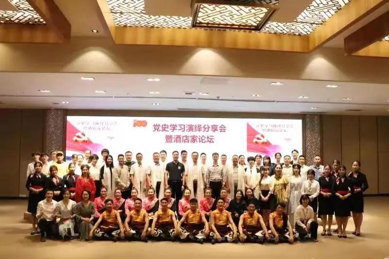 在旅游學院酒店家論壇上,八宿縣旅游發展局局長達拉次仁作了《來自高原的微笑》主題發言,用純樸的話語生動講述了微笑服務在文旅行業中的獨特魅力。來自西藏八宿縣藝術團的歌曲《美麗的八宿》以及《勇士山腳下的畢旺》《快樂生活》等舞蹈,歌頌了在黨的領導下,西藏八宿發生的翻天覆地變化以及當地人民對美好生活的向往。旅游學院優秀學生代表以《古田會議永放光芒》為題,帶大家云上參觀古田會議舊址,生動講解了古田會議精神的偉大意義。紅色經典誦讀《黨旗上寫著什么》,用錚錚誓言表達學院青年學子對黨的忠誠和堅定的理想信念。學院茶藝隊的學生也在現場表演了富有地方特色的功夫茶藝術?;顒釉诎怂蘅h藝術團《永遠跟黨走》歌舞表演中進入高潮,生動展現了各族人民堅定跟黨走、奮進新征程的美麗畫卷。