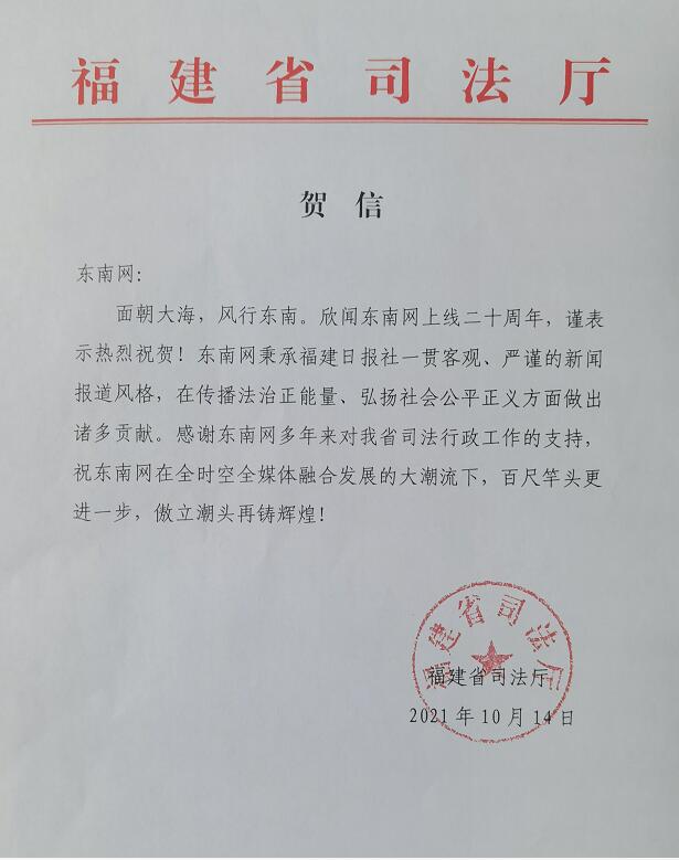 福建省司法廳賀信