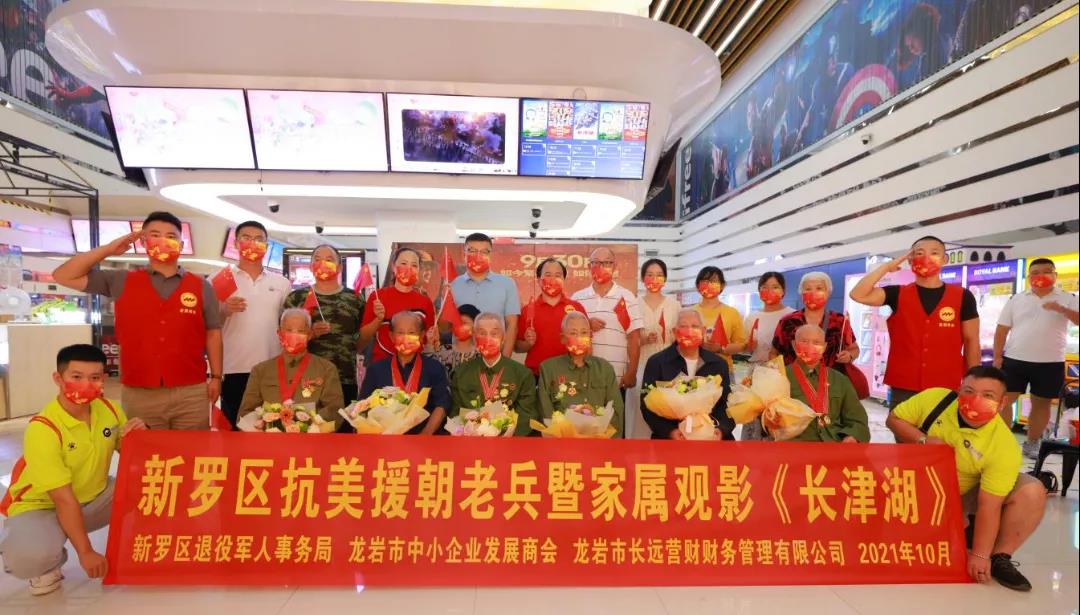 10月10日下午,新羅區退役軍人事務局聯合龍巖市中小企業發展商會組織部分新羅區籍抗美援朝老兵及家屬觀看電影《長津湖》,現場觀看的抗美援朝老兵和家屬無不動容落淚。觀影結束后,大家一起同聲高唱《中國人民志愿軍戰歌》。