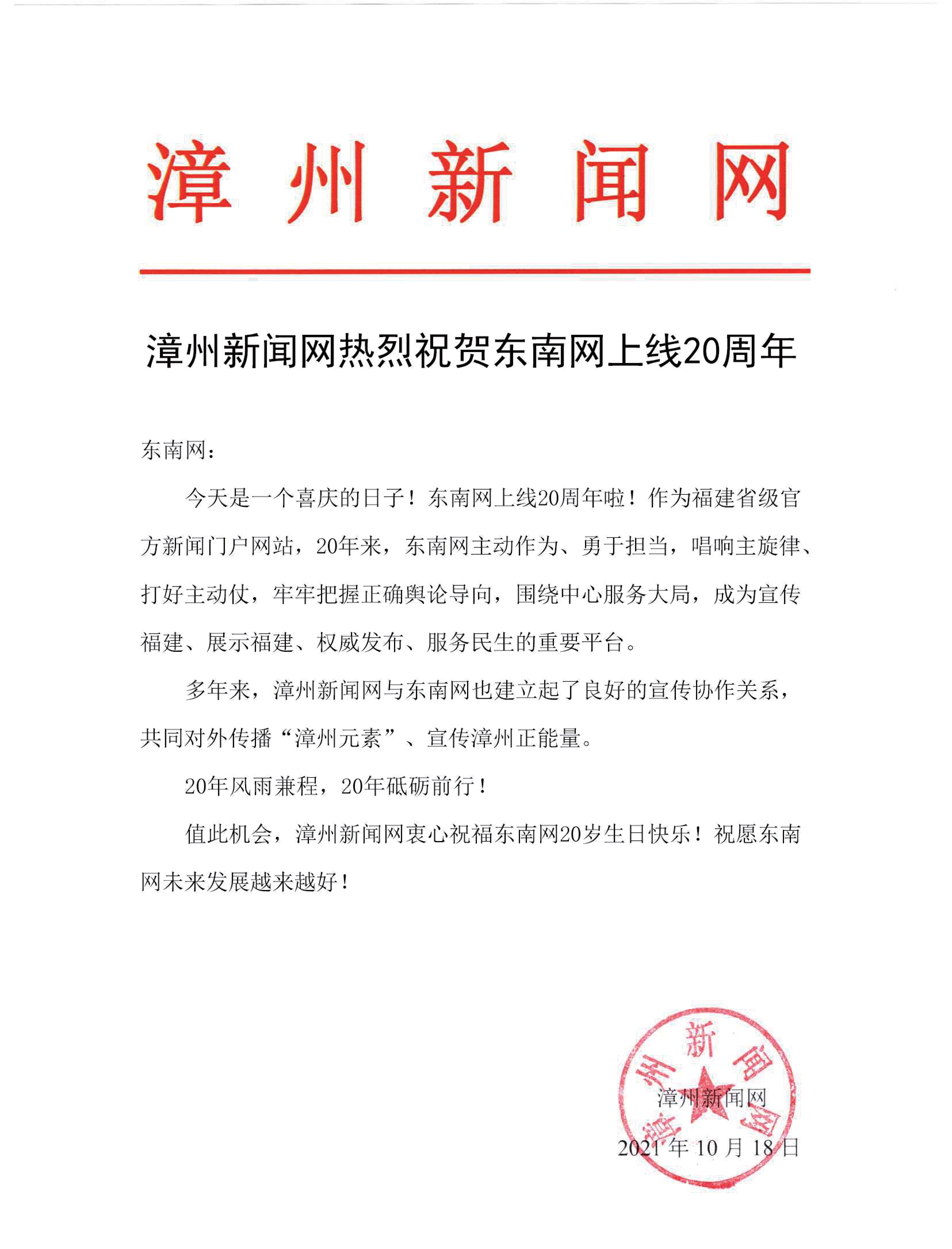 您所在的位置: 東南網 > 2021專題 > 遇見你,真好!——東南網20年 新時代再出發 > 網聚祝福 > 祝福 > 友好網媒> 正文