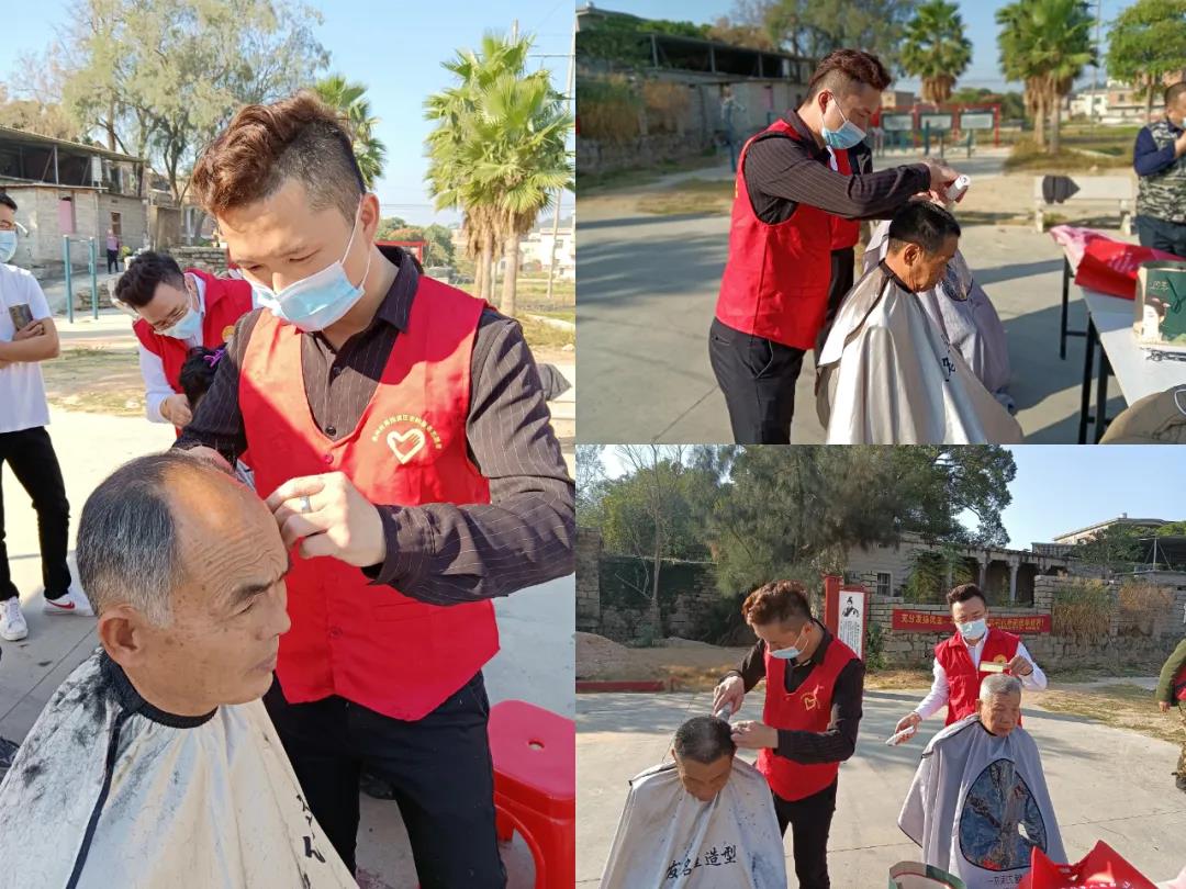 免費理發 活動現場,臺商投資區扶老助殘志愿者協會的理發師志愿者蔡雪明和黃偉鋒是區域內著名美發機構負責人,常年進村入戶為困難群眾(老人、殘疾人、孤兒青少年)愛心義務理發,并每個月固定時間走進軍營為武警官兵整理軍容軍貌。這次聽說要為革命傷殘軍人和老復員軍人、烈屬等重點優撫對象服務,兩人積極主動報名,在現場耐心周到為優撫對象免費理發,為老兵們提供貼心服務。