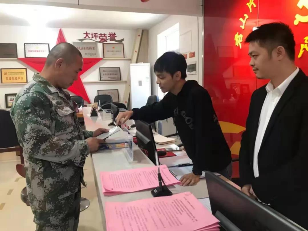 在大坪村委會門口,“大坪村退役軍人服務站”的牌子十分醒目。記者走進服務站,30歲的李敏瀚正在和從上海武警某部退役的趙城熱情攀談。