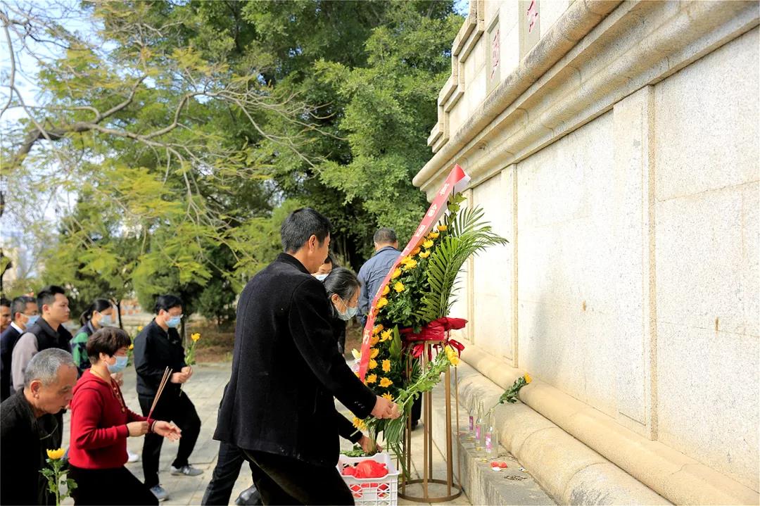 隨后,全體人員在烈士公墓前整齊肅立,向郭地隊烈士默哀,深切緬懷為革命事業英勇獻身的革命先烈,并向烈士敬獻花籃。