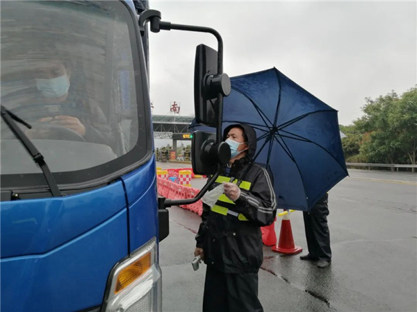 詔安縣退役軍人雨中堅守重要崗位,嚴查高速路口過往車輛,全力守護福建南大門的安全。