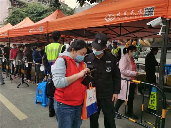 根據溫泉街道東大社區核酸檢測任務的需求和安排,巾幗志愿者們主要負責維持現場排隊秩序,協助社區居民進行登記掃碼,引導居民測溫、信息登記以及解答核酸檢測注意事項等相關工作。志愿者們始終保持耐心,認真服務,助力核酸檢測工作的順利有序、有效開展。