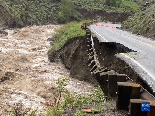 美國國家公園管理局6月13日發布的照片顯示黃石國家公園北入口的洪水和受損道路。