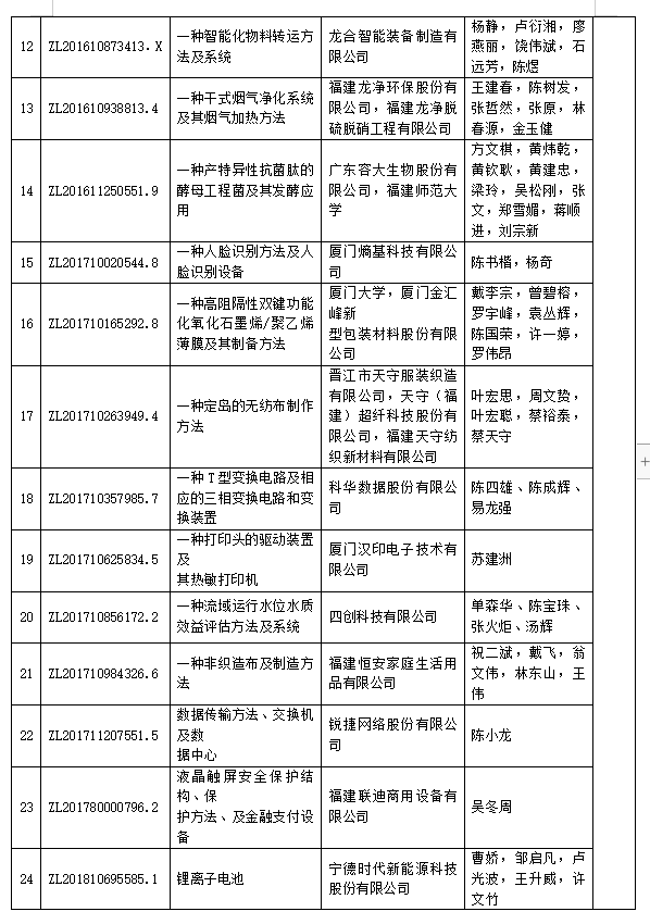 喜報!第二十三屆中國專利獎福建地區獲獎量取得“大豐收”