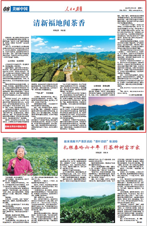 8月23日,《人民日報海外版》08版頭條刊發報道《清新福地聞茶香》,點贊福建省泉州市安溪縣以氣象服務賦能生態茶園,護好生態種好茶、“一片葉子富全縣”。
