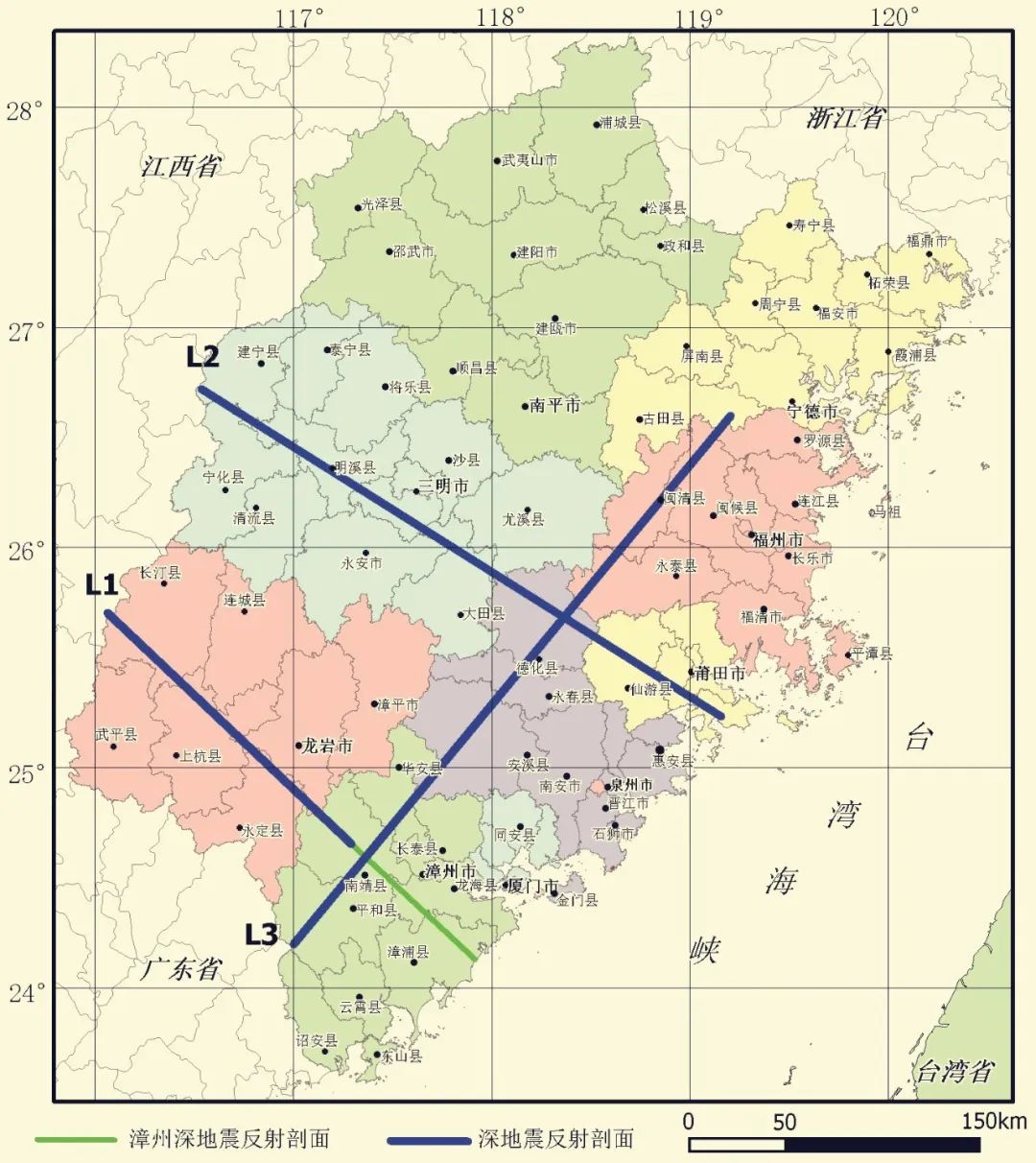 福建省地震局如此一次性、大規模、系統性地開展區域性深地震反射探測工作在國內尚屬首次。也為區域地震構造環境探查標準化技術體系建設提供了“福建樣板”。 3條探測線精準獲取數據 這次我省啟動的深地震反射探測也是中國地震局系統迄今為止規模最大的深地震反射探測類項目。為了獲取數據,科研人員在福建省共布置了3條總長815km的地震測線,涉及7個地級市,25個縣(區),86個鎮(鄉)。
