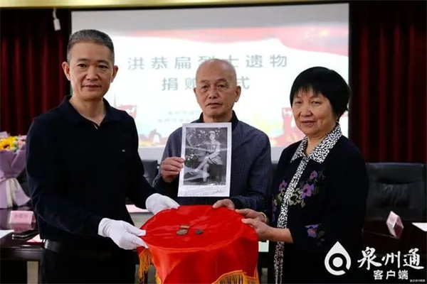 近日,泉州籍烈士洪恭扁的家屬來到泉州市革命烈士陵園,向革命烈士紀念館無償捐獻洪恭扁烈士的淮海戰役紀念章、抗美援朝紀念章等遺物,受到媒體關注。