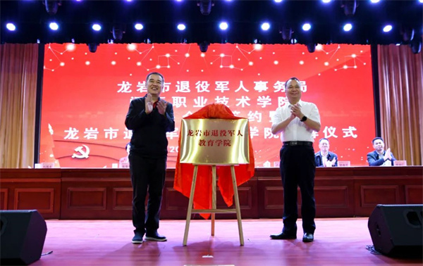 10月27日,閩西職業技術學院大匠堂內燈光閃耀、掌聲雷動,龍巖市退役軍人事務局和閩西職業技術學院戰略合作簽約暨龍巖市退役軍人教育學院揭牌儀式在這里隆重舉行。龍巖市人民政府副市長廖深洪蒞臨指導,閩西職業技術學院、龍巖市退役軍人事務局、四家優待證合作銀行領導及學院退役軍人大學生代表參加儀式。