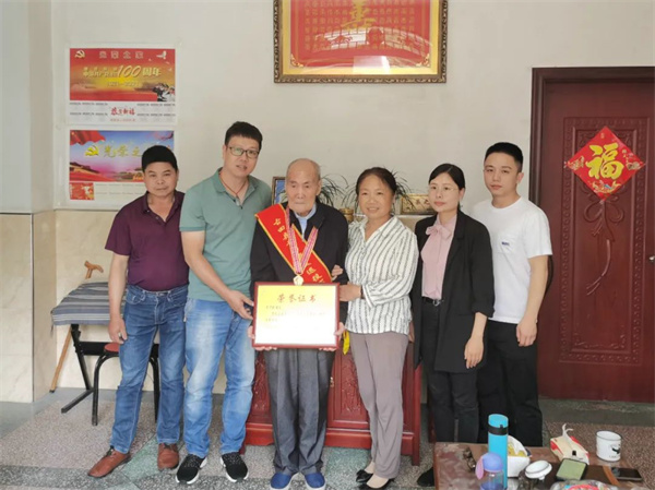 李日偉(左二)到鶴塘鎮溪邊村指導村級退役軍人服務站建設 工作期間,李日偉實踐探索“五個一批”信訪工作法,即構建聯動機制慰問一批;強化思想引領尊崇一批;發揮軍人作用援助一批;匯聚社會力量扶持一批;深入家訪走訪教育一批。僅2021年一年,他就參與接待群眾800多批次千余人。他始終堅信信訪工作不是簡單的“坐等人來”,要走出去,到退役軍人最需要的地方去。在成百上千次走訪慰問中,他為全縣梳理出符合申報省級臨時救助條件的困難退役軍人27名,爭取到19萬元的幫扶援助專項資金。通過開展“把黨的關愛送到老兵心中”主題慰問,送出慰問金19.91萬元,為困難老兵林某等提供公益性崗位等實際援助,得到服務對象的高度評價。他積極組織開展志愿服務50余次,打造首批社會擁軍企業(店)16家,邀請部分退役軍人參加本地“慶祝建黨一百周年”活動等,不斷提升退役軍人榮譽感。積極引導社會力量和優秀退役軍人參與幫扶援助,對接省閭山扶貧服務中心、縣愛心公益聯合會等慰問部分老兵及家屬,送出慰問金合計9.43萬元。 抓聯動,強配合,推進“高效黏合”,提升政策執行力 李日偉致力于盤活社會擁軍資源,踐行社會化擁軍探索,在全縣范圍內用心打造了首批16家社會“商圈”擁軍企業(商戶),以金融、通訊、生活服務等形式,為軍人軍屬及退役士兵送上一份“大禮包”。2021年3月推動落地“擁軍貸”項目,預授信全縣退役軍人和其他優撫對象及現役軍人家屬信貸規模1億元。目前已發放信貸金額3000多萬元,涉及食用菌、果蔬、食品等多行業,300余名退役軍人受益。在落實“士兵退役一件事”上,李日偉還探索創新士兵退役“六個一”服務,協同縣公安局、人社局、組織部、團縣委、人武部、郵儲銀行等多家單位,通過“一站式專班服務、一場座談會、一場招聘會、一封信、一份大禮包、一張滿意度測評表”的“六個一”服務,確保多部門協作落地見效,切實提高退役軍人獲得感、幸福感和榮譽感。 抓載體,強氛圍,有效“立體宣傳”,提升榮譽引領力