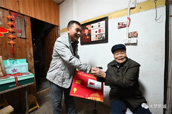 11月16日,寧德市蕉城區退役軍人事務局聯合中國郵儲銀行蕉城支行,為蕉城區農村籍唯一健在的抗美援朝老兵葉揚洋上門激活退役軍人優待證,并為他送上慰問品,叮囑他保重身體,如有需求可與退役軍人事務局聯系,將會第一時間上門為其協調解決困難。