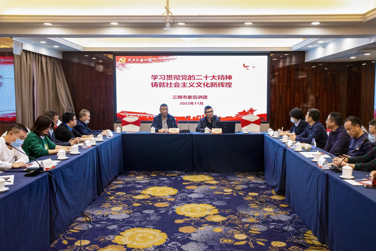 會議明確了宣傳方向和征訂要求,出版社業務人員對活動用書進行深入講解和展示。三明分公司總經理詹文謙要求大家轉變觀念、主動出擊,全力以赴做好“寒假讀一本好讀書”活動的宣傳征訂工作,努力確?;顒尤〉妹黠@成效。 會議還邀請三明市委講師團團長陳首龍宣講黨的二十大精神,對二十大文件的宣傳征訂工作及安全生產工作進行安排部署。